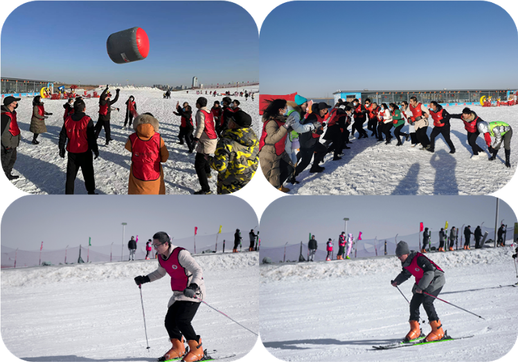 下午13:00到達滑雪場后,拉開了今天“雪場比武”的帷幕。通過分組,開展了一系列的破冰活動,冰天雪地和現(xiàn)場火熱的氛圍形成了鮮明對比。