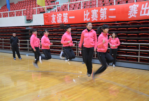 8人的集體跳繩比賽對運(yùn)動(dòng)員的耐力和齊整度是一個(gè)不小的考驗(yàn),我公司參加運(yùn)動(dòng)員完成了49次的有效好成績!
