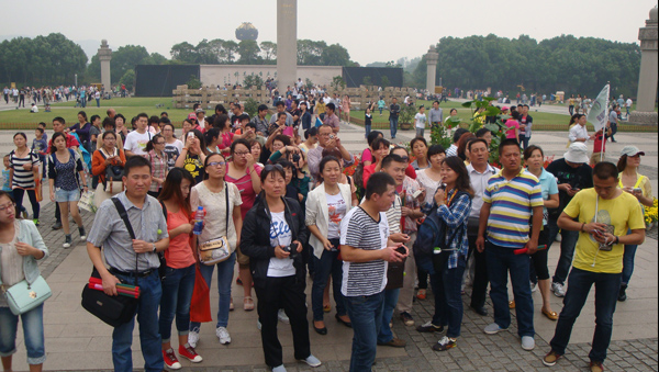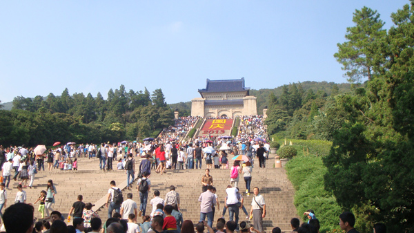 經(jīng)過(guò)火車24個(gè)小時(shí)的顛簸,終于抵達(dá)旅行的第一站——南京。地接導(dǎo)游已經(jīng)在那里等我們,導(dǎo)游非常有特點(diǎn),喜歡把她從小到大自身的事件結(jié)合當(dāng)?shù)氐臍v史風(fēng)情娓娓道來(lái),讓我們不禁沉浸其中,印象深刻。去南京主要就是觀賞“兩明(民)文化”,即明朝文化、民國(guó)文化。我們的第一站即孫中山的紀(jì)念地——中山陵景區(qū)。去的大路兩旁林木成蔭,巍峨疊嶂,一路近百年的法國(guó)梧桐,別樣風(fēng)情。中山陵堂依山而建,態(tài)勢(shì)舒展,既莊嚴(yán)肅穆,又有一種居高臨下的王者風(fēng)范。走過(guò)博愛(ài)坊,沿著陵道拾級(jí)而上,兩旁遍植著四季常青的高大雪松和被稱作“八爪金盤”的花兒。陵門牌匾上鐫刻著的金色字體“天下為公”更昭示著中山先生的博大胸襟。站在陵堂前的平臺(tái)上回首遠(yuǎn)眺,歷經(jīng)歲月風(fēng)雨的南京城盡收眼底。