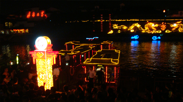秦淮河的水既是動(dòng)的,也是靜的,一波一波的蕩漾著,印襯一個(gè)個(gè)樓臺(tái)畫舫,在繁華夜景下如燈如墨,恬靜且委婉(如果沒(méi)有這么多游人的話)。