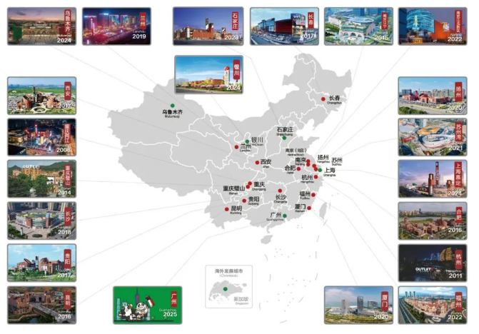 截止2024年,砂之船集團(tuán)在重慶、杭州、南京、合肥、昆明、長春、西安、貴陽、長沙、蘭州、揚(yáng)州、廈門、蘇州、福州、烏魯木齊等19個(gè)直轄市、省會(huì)城市或高速發(fā)展城市簽約落地21家大型超級(jí)奧萊,目前運(yùn)營著17家超級(jí)奧萊。
