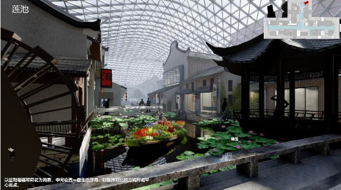 夢(mèng)水鄉(xiāng)文旅街區(qū)將通過(guò)燈光、置景、多媒體等各種渲染手法場(chǎng)景化環(huán)境,多維度多角度打造沉浸式體驗(yàn)空間,打造夢(mèng)水鄉(xiāng)文旅街區(qū)獨(dú)特的江南韻味。