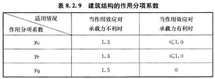 標準8.2.9 建筑結構的作用分項系數(shù),應按表8.2.9采用。
