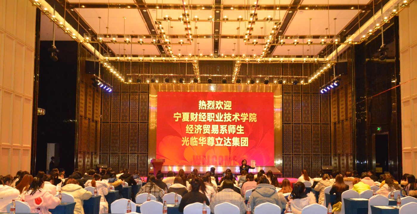 新聞中心2019年11月26日中午1:30分,立達(dá)深航國(guó)際酒店國(guó)際宴會(huì)大廳坐滿了來(lái)自寧夏財(cái)經(jīng)職業(yè)技術(shù)學(xué)院經(jīng)濟(jì)貿(mào)易系的100多名即將畢業(yè)的學(xué)員,巨大的電子屏上:“熱烈歡迎寧夏財(cái)經(jīng)職業(yè)技術(shù)學(xué)院經(jīng)濟(jì)貿(mào)易系師生光臨華尊立達(dá)集團(tuán)”,表達(dá)著東道主華尊立達(dá)集團(tuán)的一片熱情。主席臺(tái)上華尊立達(dá)集團(tuán)人力資源部負(fù)責(zé)人正在給這批特殊的客人介紹著企業(yè)的發(fā)展簡(jiǎn)史、業(yè)態(tài)定位,以及“客人”們最為關(guān)切的未來(lái)就業(yè)所需的心儀崗位……